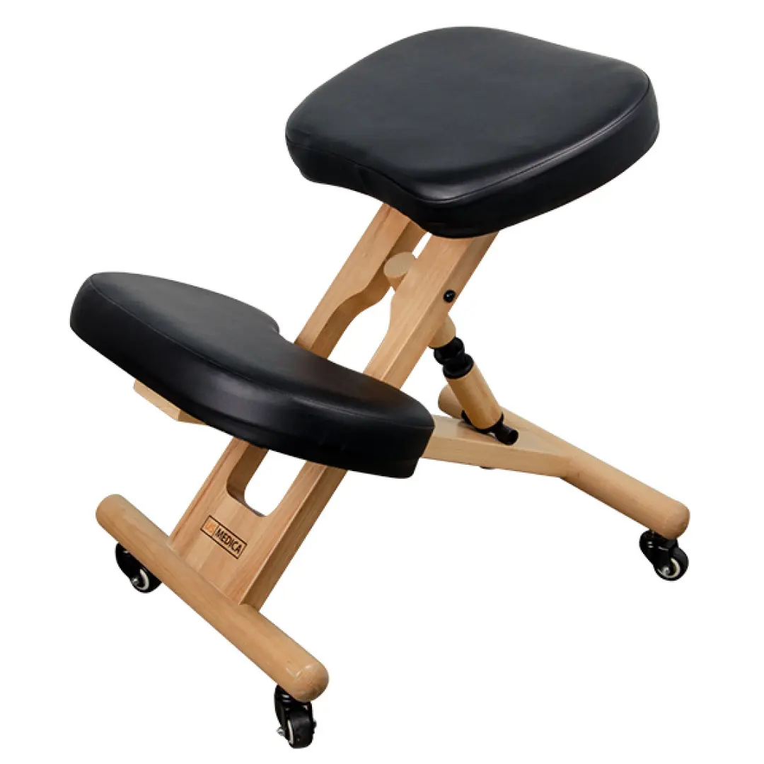 Гениальное в своей простоте средство – стул, у которого сиденье расположено под небольшим углом, непроизвольно заставляя сидящего распрямлять спину. Чтобы избежать соскальзывания со стула и обеспечить полный комфорт сидящему, под коленями расположена удобная мягкая подставка.